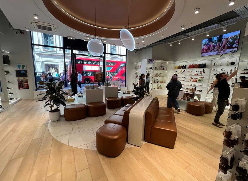 Material Palette & Finishes: Light wood flooring, white walls, and brown accents created a balanced, premium aesthetic that aligned with ALDO’s global retail standards.