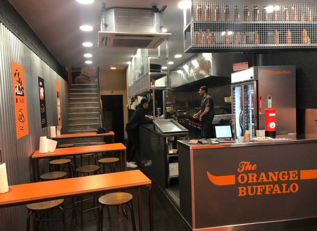 The final installation delivered a fully branded environment that captured The Orange Buffalo’s bold, streetwise identity. The combination of exterior signage and interior décor created a seamless customer experience—supporting both visual impact and operational flow.